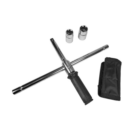 Justerbar hjulmutternøkkel som fungerer både som hjulkryss og hjulmutternøkkel. Det skyvbare håndtaket gjør at man kan raskt skru ut boltene samtidig som man enkelt kan øke momentet for å løsne/stramme muttere og bolter. Kan enkelt demonteres slik at den tar liten plass. Leveres med 17 /1 9 og 21 / 23 mm piper. Produsert i chrom vanadium stål. Med praktisk oppbevaringsbag.