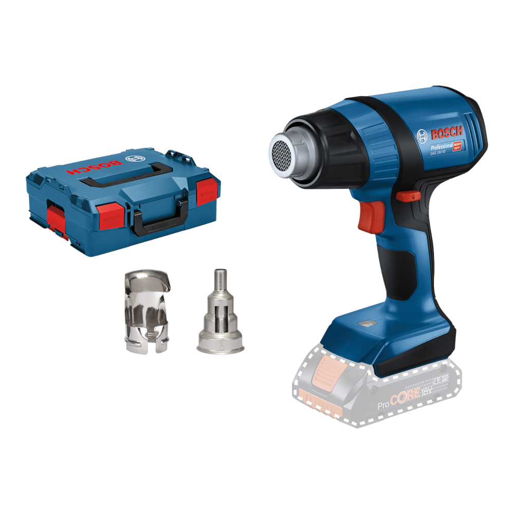 Bosch GHG 18V-50 batteridrevet varmluftpistol er utviklet for fleksibel bruk i hektiske arbeidsdager og gir stor bevegelsesfrihet på arbeidsplassen. Varmluftpistolen varmes opp til 300 °C på kun 6 sekunder, slik at arbeidet kan starte raskt uten unødvendig ventetid. Den kompakte og batteridrevne konstruksjonen gjør den enkel å transportere og ideell for bruk på steder uten tilgang til strøm. Med to temperaturnivåer på 300 °C og 500 °C samt integrert LED-lys er verktøyet enkelt og trygt å bruke i ulike arbeidsmiljøer. Bosch GHG 18V-50 Professional er kompatibel med alle Bosch Professional 18 V-batterier og ladere, og gir best ytelse med ProCORE18V-batterier.