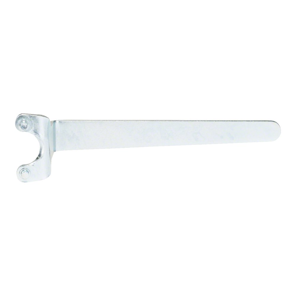 Bosch hakenøkkel krummet er en spennenøkkel beregnet for innfesting og løsning av flanger på slipekopper. Den rettvinklede utformingen gir god tilgang og kontroll ved montering og demontering, og verktøyet er tilpasset presis bruk på vinkelslipere og tilsvarende utstyr.