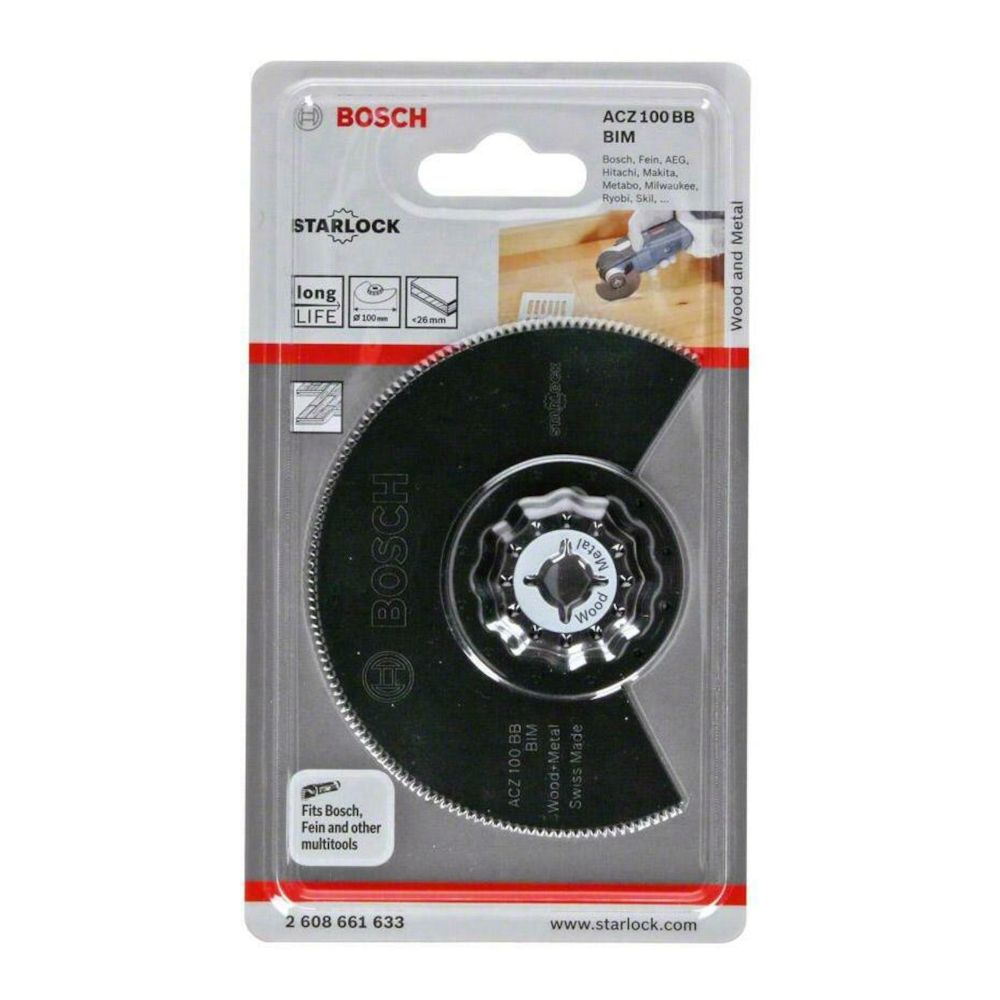 BOSCH ACZ 100 BB BiM Starlock sagblad for tre og metall 100 mm er utviklet for brede og dype kutt i treverk, metall og plast. Med en ekstra stor diameter på 100 mm egner sagbladet seg spesielt godt til plan- og innstikkskutt i dørkarmer, lister og langs gulv. Bosch sin patenterte sirkulære sveiseteknikk reduserer risikoen for fastkjøring og brennmerker, samtidig som den gir stabile og frittstående tenner. Den robuste bi-metall-konstruksjonen kombinerer et HCS-blad med HSS-tenner, noe som gir høy slitestyrke og lang levetid også ved arbeid i harde og abrasive materialer. Sagbladet har Starlock-feste for optimal kraftoverføring og raskt bladbytte uten verktøy.