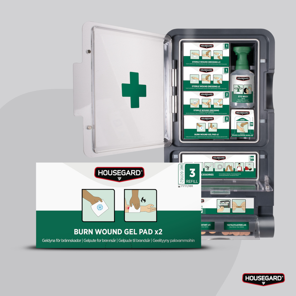 Bandasjene er kompatible med Housegards førstehjelpsstasjoner og andre fabrikater.