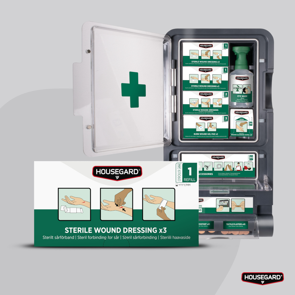 Bandasjene er kompatible med Housegards førstehjelpsstasjoner og andre fabrikater.