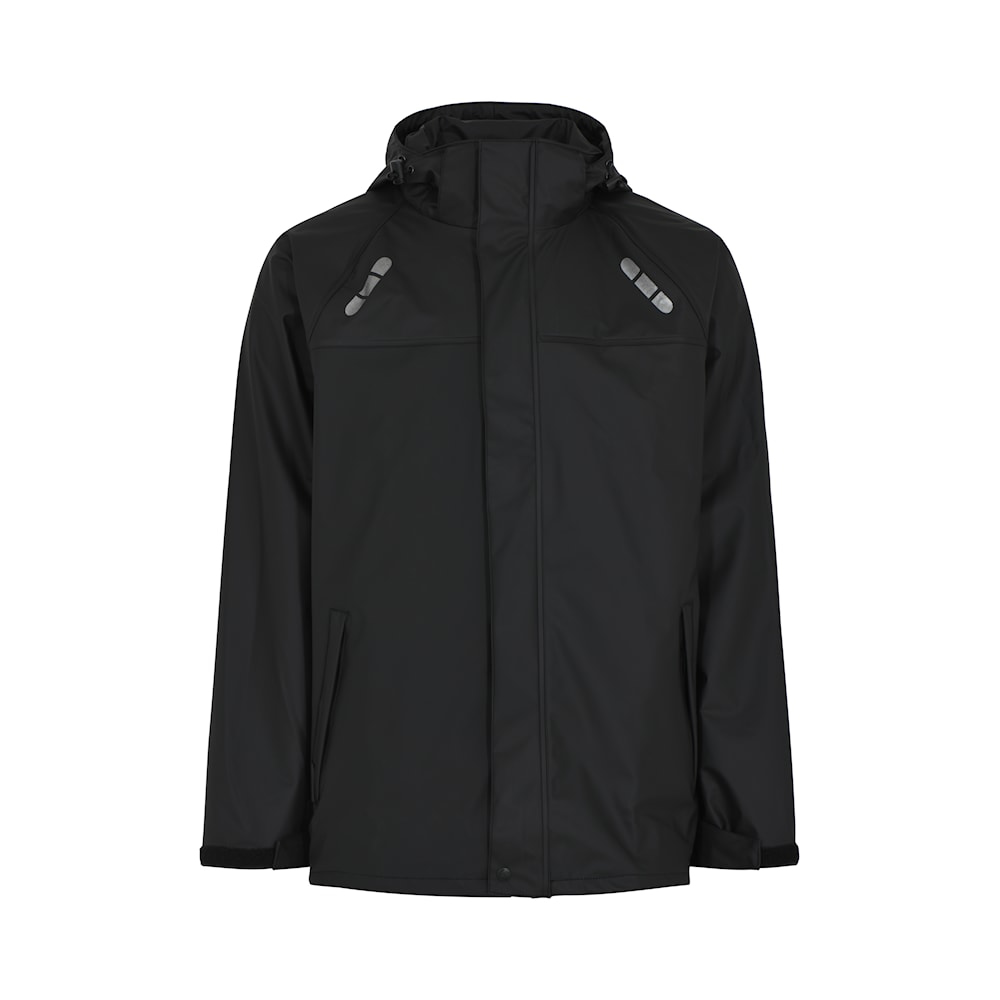 Lyngsøe regnsett med jakke og bukse i slitesterk PU-kvalitet. Regnsettet er laget av 100 % polyester med PU-belegg på 170 g/m², og gir svært god beskyttelse mot vind og regn. Med en vannsøyle på over 20.000 mm holder du deg tørr selv i kraftig nedbør. Hetten kan tas av etter behov, og både jakke og bukse har praktiske justeringsmuligheter for best mulig passform og komfort.