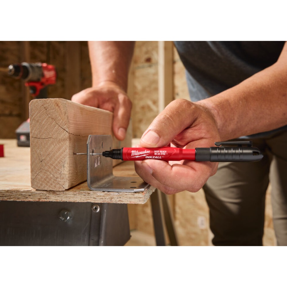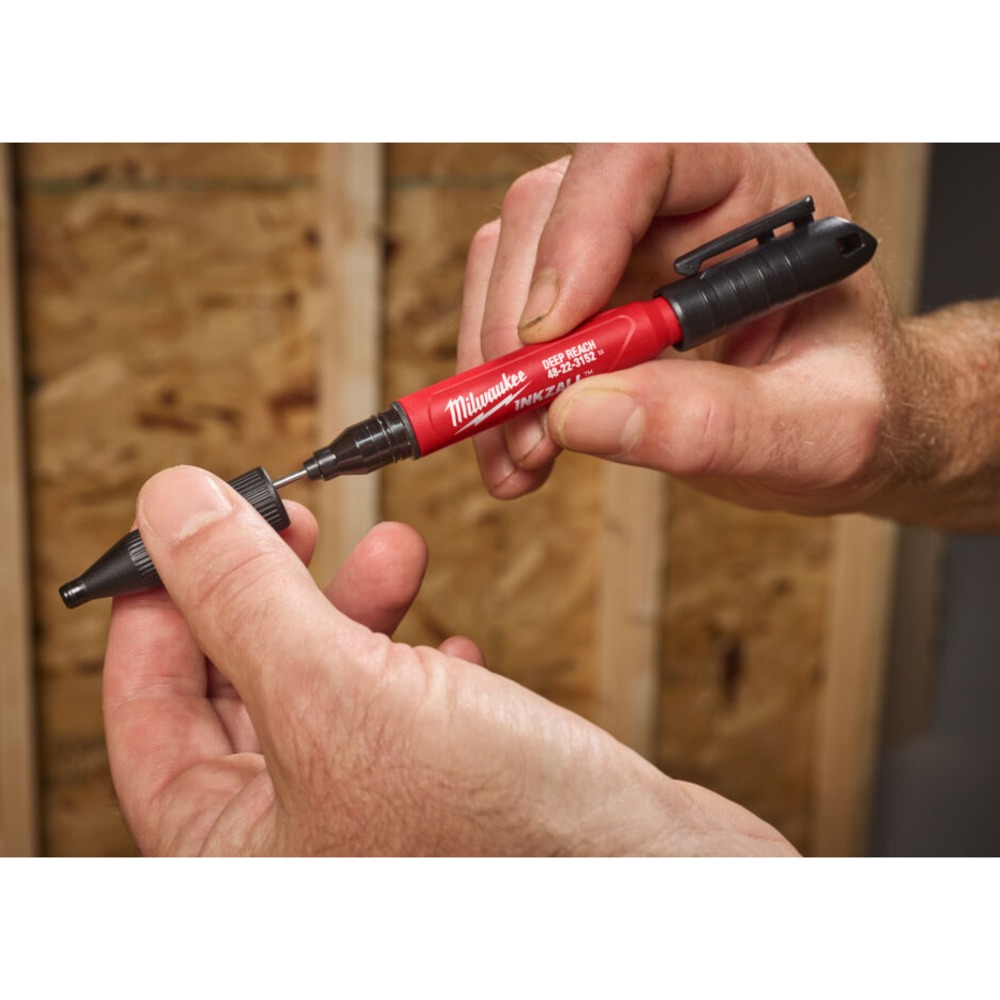 Milwaukee Deep Reach Ultra Fine Sort Tusj Inkzall er utviklet for presis merking der vanlige tusjer ikke kommer til. Den dype penetrasjonsdesignen og ultra fine spissen gjør den ideell for krevende oppgaver på byggeplass og verksted.