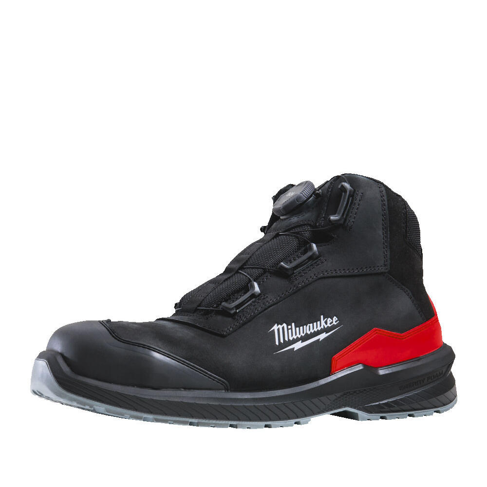 Milwaukee Flextred™ S3S vernesko svart er en fleksibel og lett allround verneskolett utviklet for høy komfort, presis passform og maksimal sikkerhet gjennom lange arbeidsdager. Skoen kombinerer ENERGY FOAM hældemping for optimal energiavkastning med en robust ROLLCAGE™ hælstabilisator som gir trygg støtte i krevende terreng. BOA® Fit System sørger for rask og presis justering, mens vannavstøtende nubucklær og forsterket front beskytter mot vær og slitasje. Verneskoen er ESD-sertifisert, flyplassvennlig og oppfyller kravene i EN ISO 20345:2022 S3S-standarden.