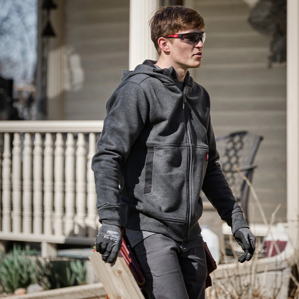 Milwaukee GRIDIRON™ hettejakke grå er designet for komfort og slitestyrke gjennom hele arbeidsdagen. Jakken kombinerer robust konstruksjon med funksjonelle detaljer som gjør den ideell for krevende arbeidsforhold. Den rive- og slitasjebestandige bomull/polyester-blandingen gir balanse mellom bevegelighet og beskyttelse, mens hette og ribbestrikkede kanter sørger for ekstra komfort og værbeskyttelse.