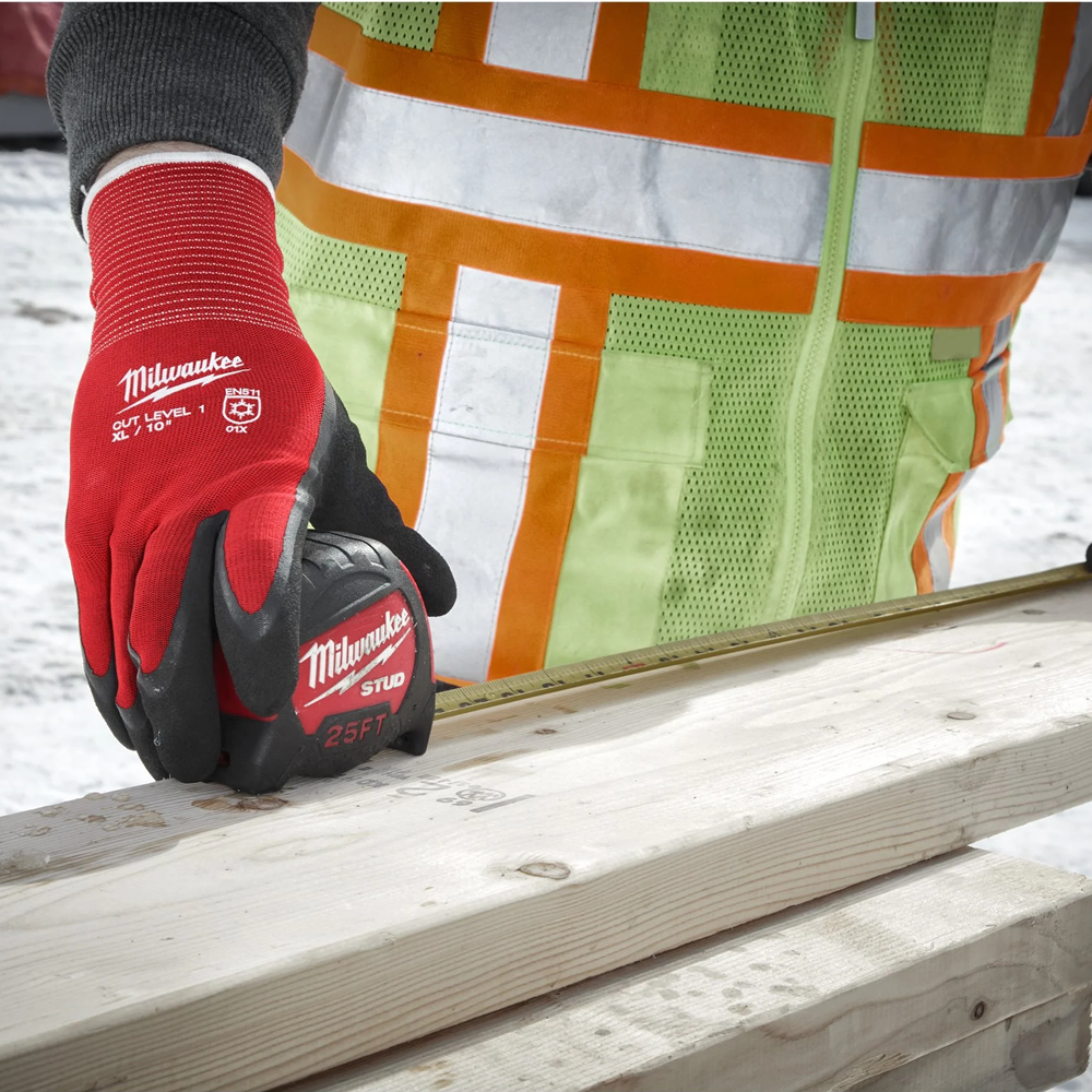 Milwaukee Kutthansker Vinter A (12 pk) er utviklet for profesjonelle som trenger varme, komfort og pålitelig beskyttelse i krevende vinterforhold. Hanskene har dobbel foring med akrylfrotté for god isolasjon og pusteevne, mens den elastiske ytterdelen i nylon gir bevegelsesfrihet og komfort gjennom hele arbeidsdagen. Lateksbelegget sikrer godt grep, også ved håndtering av små deler i kulde. Sertifisert etter europeiske standarder for både kutt- og kuldebeskyttelse.