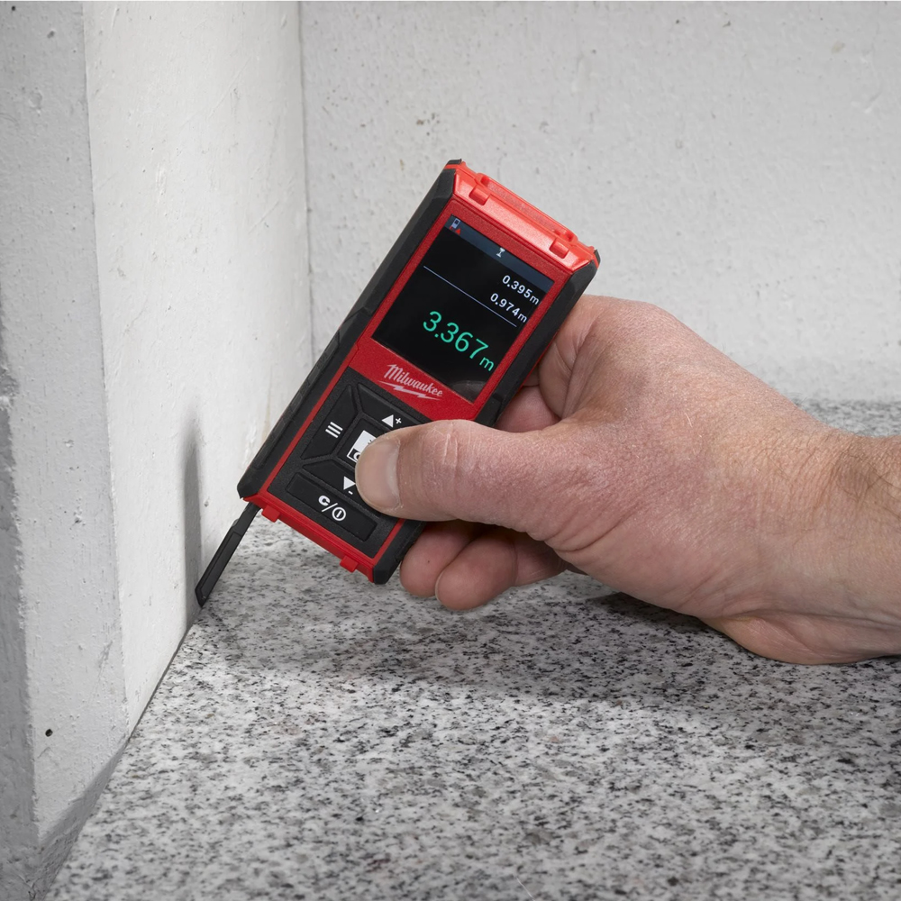 Kompakt og nøyaktig laseravstandsmåler for måling av avstander opptil 45 m. Ideell for byggeplass, montasje og planlegging hvor raske og presise målinger er viktig. Leveres med nylonhylster og batterier.