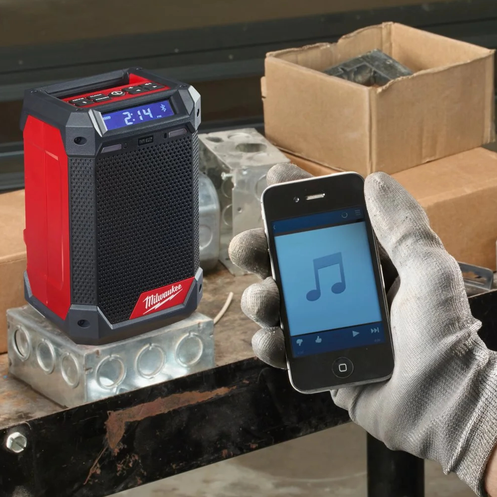 Milwaukee M12™ RCDAB+-0 radio DAB+ med ladefunksjon gir robust lyd og fleksibel drift på arbeidsplassen, med premium høyttaler og diskanthøyttaler for høy lydkvalitet. DAB+ og AM/FM-tuner med digital prosessor gir presist mottak, god signalklarhet og nyttig tilleggsinformasjon som sang, artist og nøyaktig tid. Med digital Bluetooth®-mottaker kan du strømme musikk opptil 30 meter, og innebygd laderfunksjon gjør det enkelt å lade både M12™ batterier og enheter via USB.