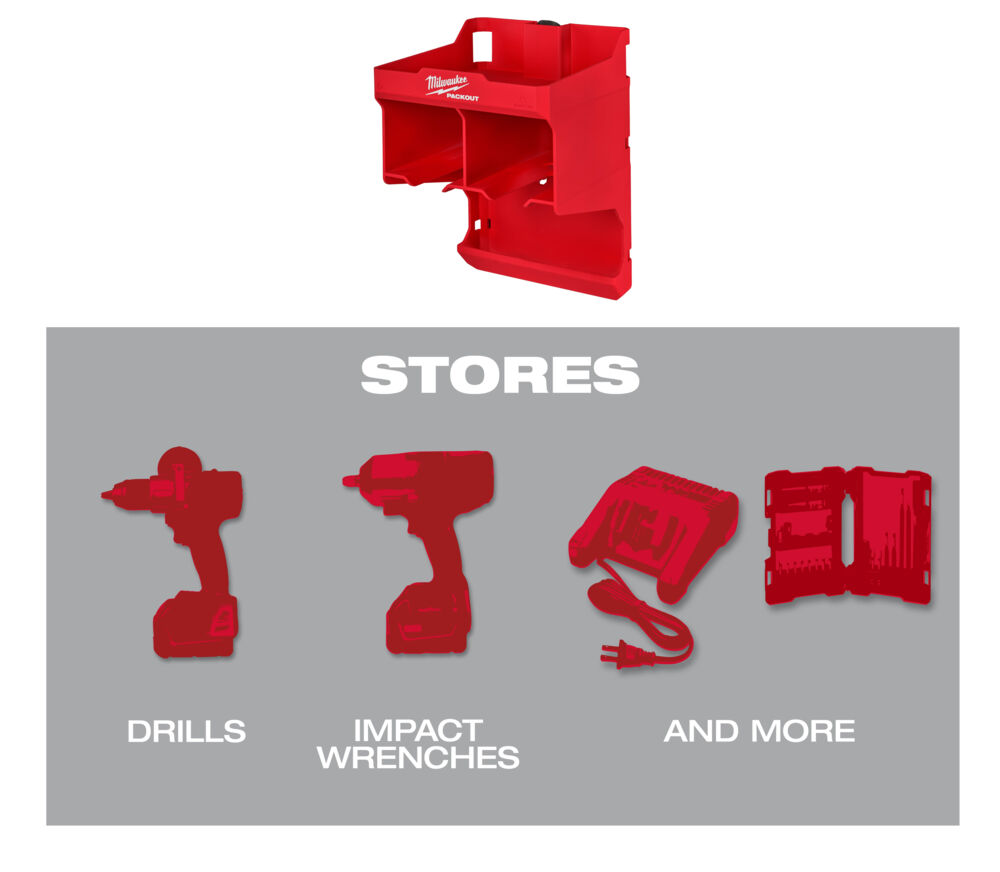 MILWAUKEE PACKOUT™ oppbevaring med enkel tilgang gir deg en praktisk løsning for å organisere og transportere verktøyene dine. Enheten festes trygt i PACKOUT™ systemet med et enkelt klikk, og gir rask tilgang til ofte brukte maskiner. Denne modulen gjør det enkelt å holde orden og tilpasse systemet etter dine behov.
