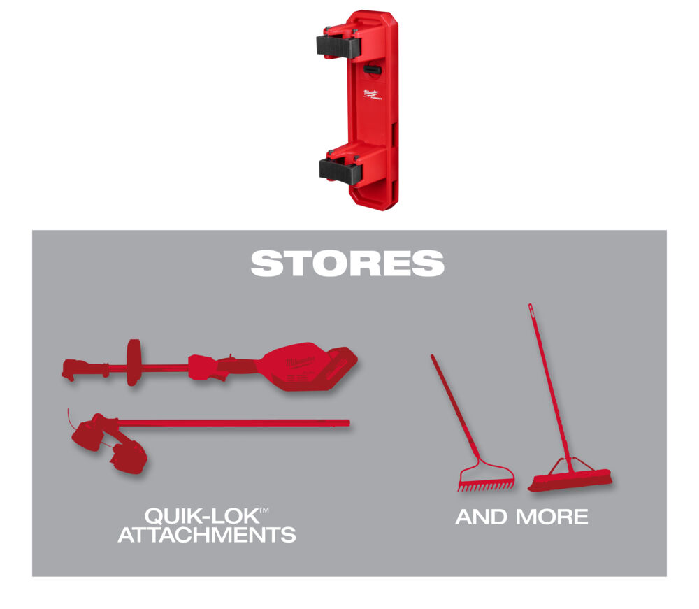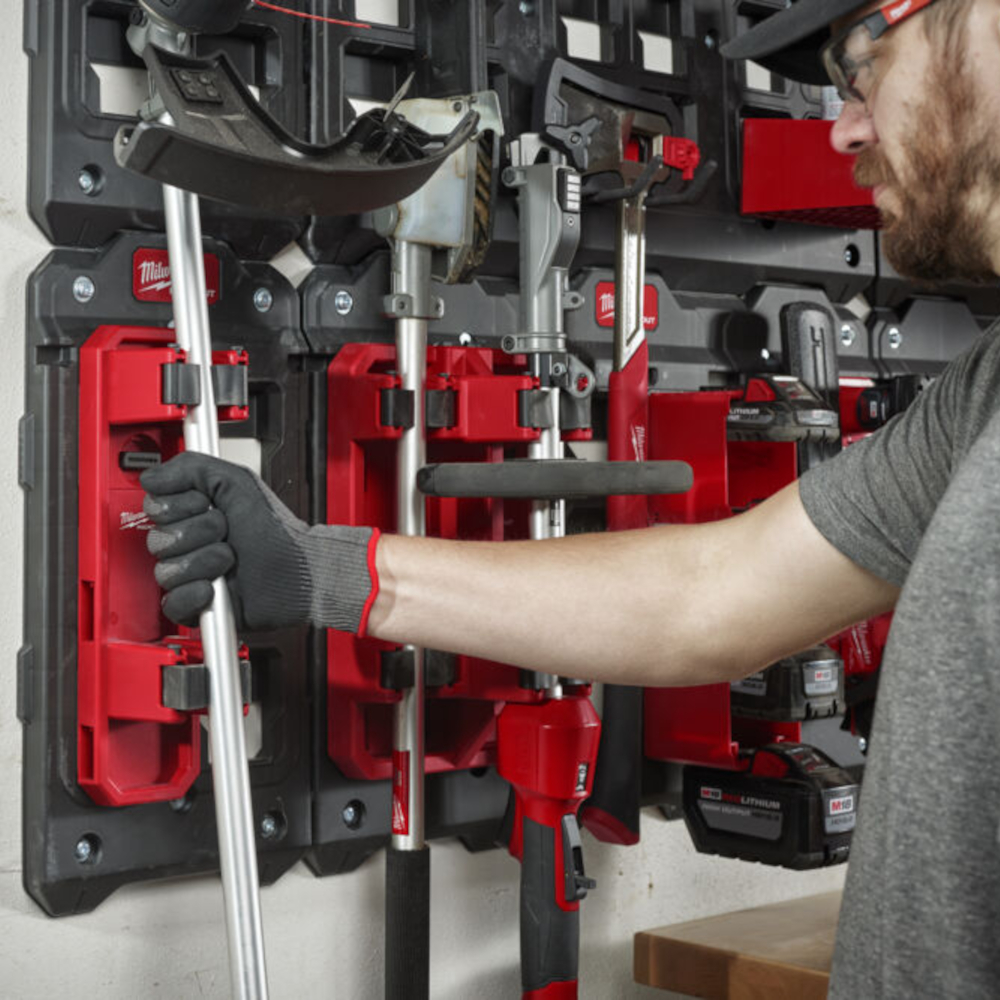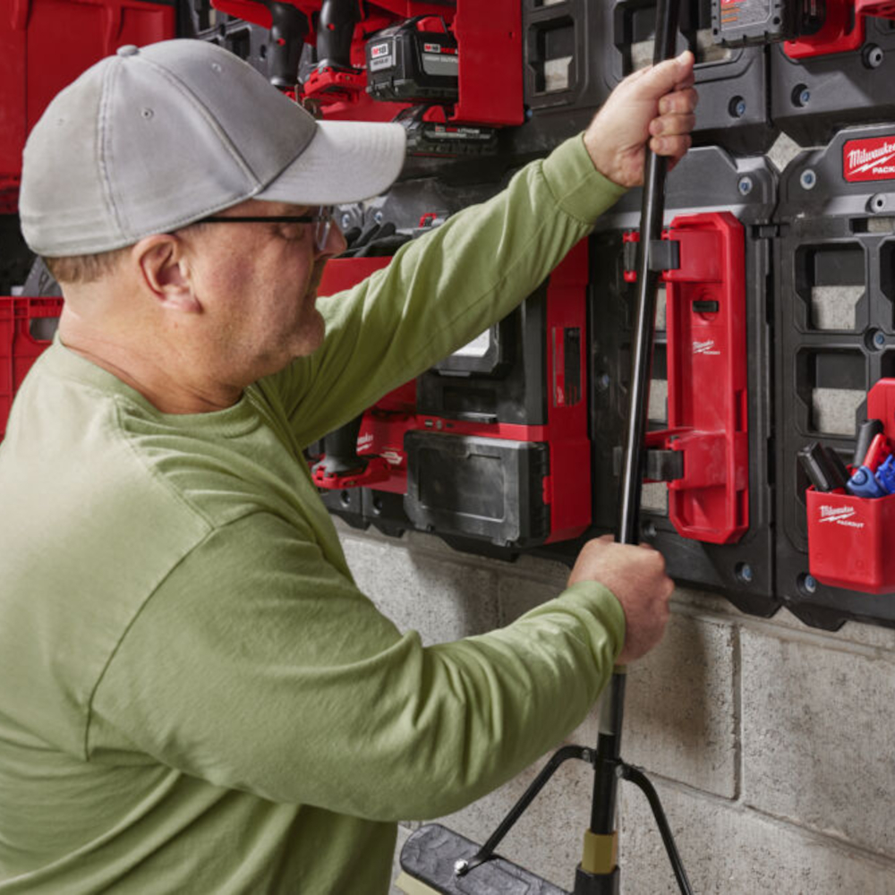 MILWAUKEE® PACKOUT™ Single Long Handled Storage gir praktisk oppbevaring av utstyr med lengre håndtak, som Quik-Lok™ verktøy, hageredskap og annet utstyr du ønsker enkel tilgang til. Med klikk- og låsesystemet monteres den trygt på andre PACKOUT™-enheter, slik at du kan bygge et system som passer dine behov – både i verkstedet, på byggeplassen og hjemme.