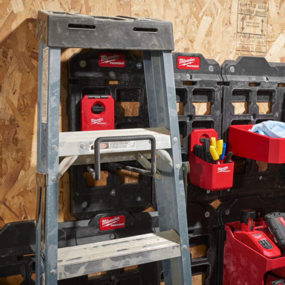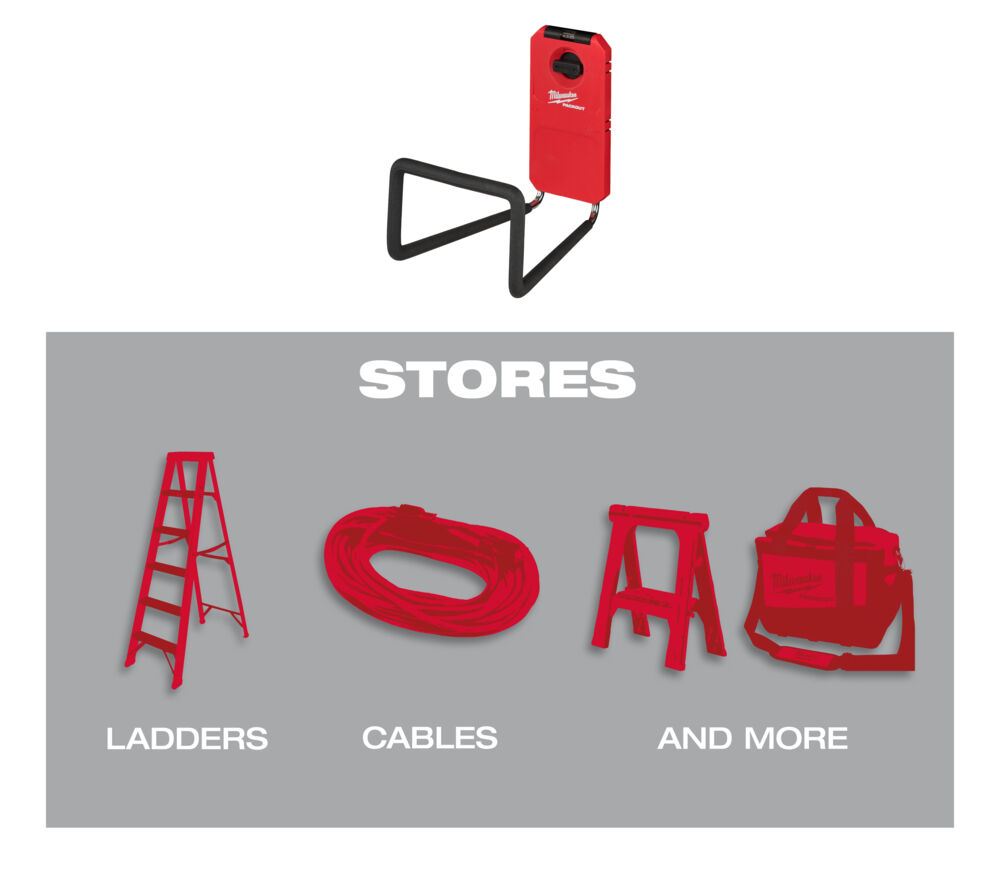 Milwaukee PACKOUT™ oppbevaringskrok stor krok er laget for trygg og fleksibel oppbevaring av verktøy og utstyr som veier litt mer. Den solide stålkonstruksjonen gir høy bæreevne, mens belegget beskytter både krokene og det du henger opp. Med PACKOUT™ sitt klikk- og låsesystem monteres kroken raskt og sikkert på veggplaten, slik at du enkelt kan tilpasse oppsettet etter behov – enten det er i verksted, garasje eller bod.