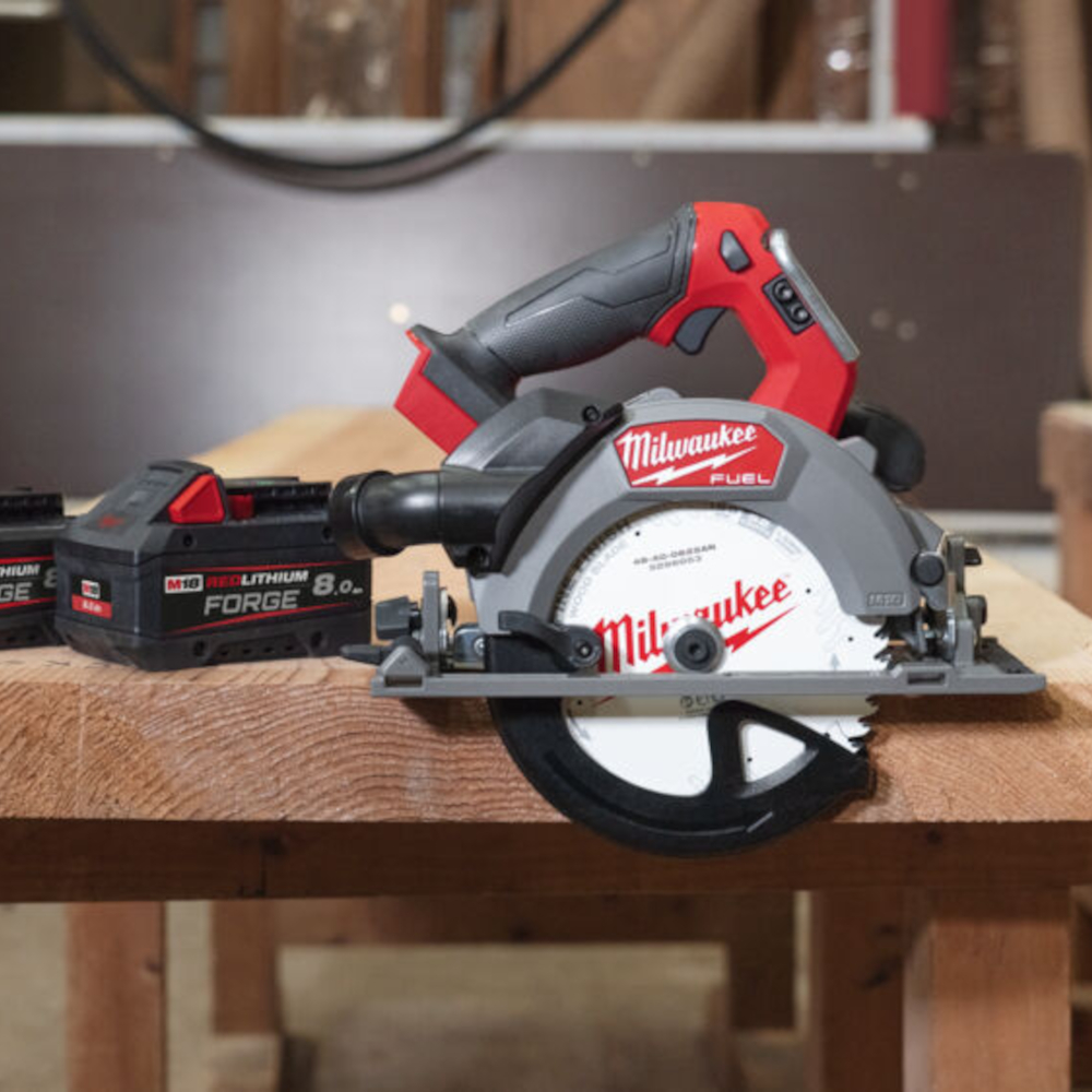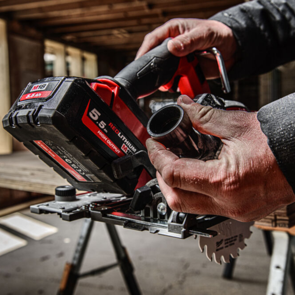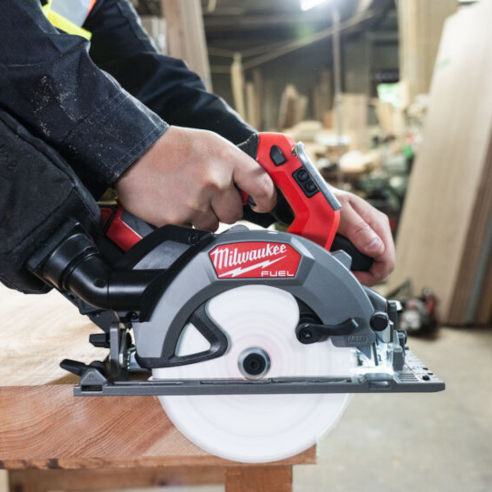 Milwaukee M18 FUEL™ FCSDC165-0C er en 165 mm sirkelsag laget for raske, presise kutt. Sagen er kompatibel med styreskinne og leveres i koffert.
