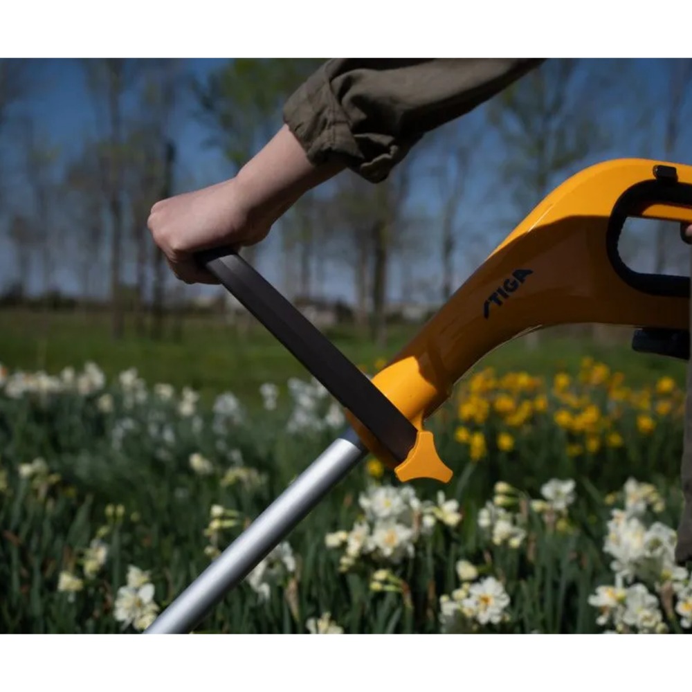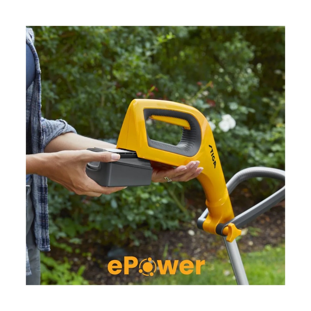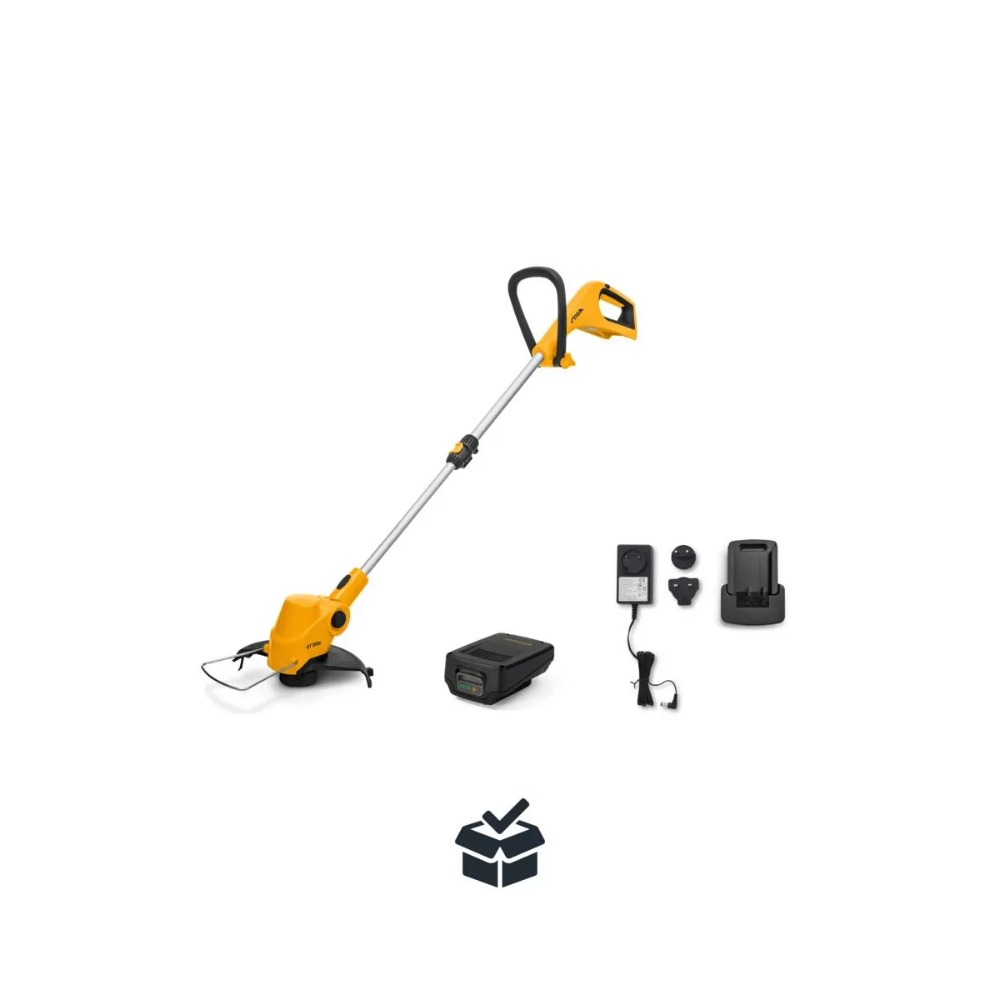 Collector 136e batteridrevet gressklipper, en lett og smidig gressklipper som er ideell for hverdagsbruk. Den drives av et 20V 2 Ah ePower batteri – utviklet og testet av STIGA Europa. Gressklipperen klipper opptil 300 m2 på kun én lading, og den har en 35 liter gressoppsamler. GT 100e Kit batteridrevet gresstrimmer er komfortabel og enkel å håndtere, og gjør det til en fornøyelse, ikke et slit, å rydde plenen, trær, busker og gjerder. Takket være den kompakte designen og det optimalt balanserte ePower22-batteriet – utviklet og testet av STIGA i Italia – får du 20 minutters uanstrengt trimming på én enkelt lading.
