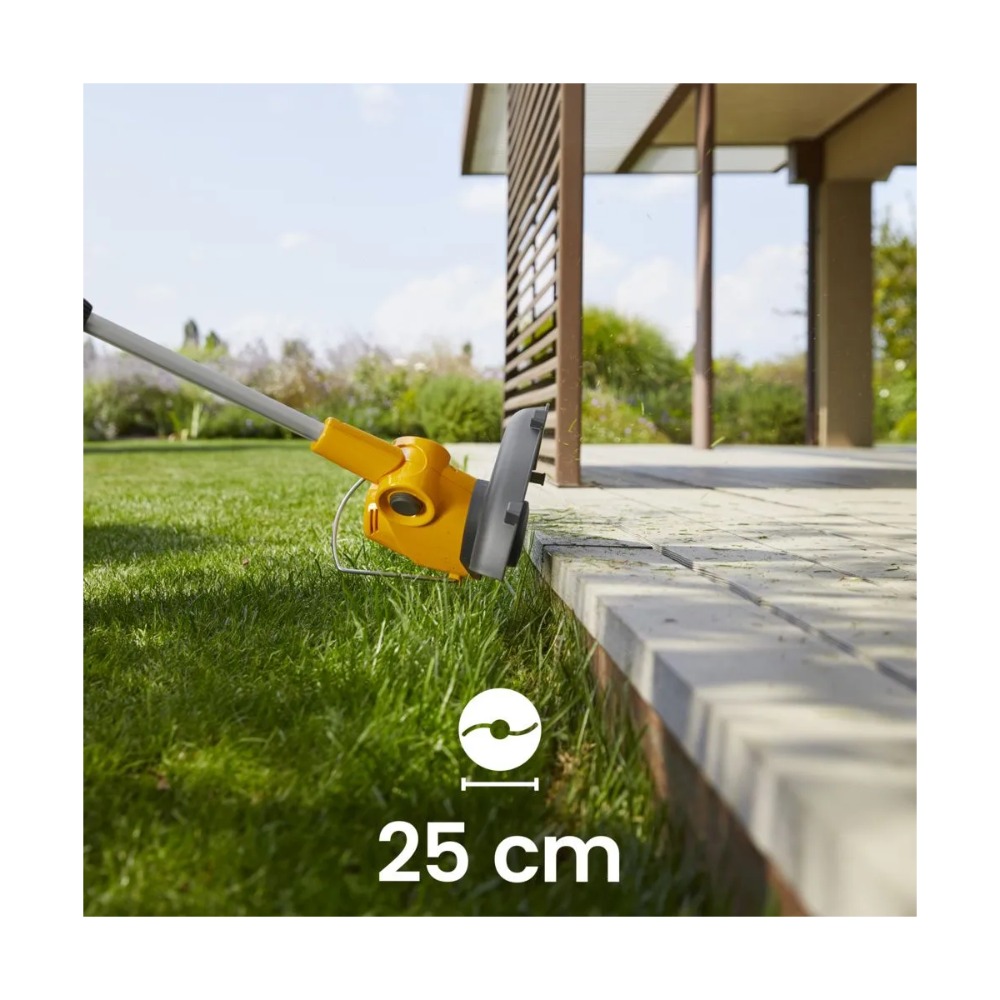 - Kraftig motor og automatisk mating av én linje gir uavbrutt trimming helt til batteriet er fullt