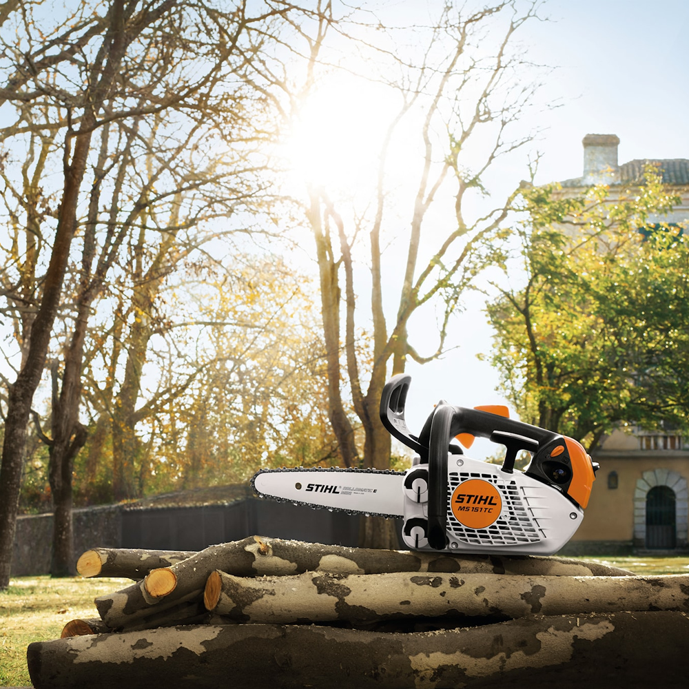 STIHL MS 151 TC-E er en svært lett bensindrevet topphåndsag med topphåndtak, utviklet for arborister og profesjonell trepleie. Den lave vekten, fine skjæreutstyret og gode balansen gjør den ideell til beskjæring, fjerning av dødt tre og presisjonsarbeid i trekroner.