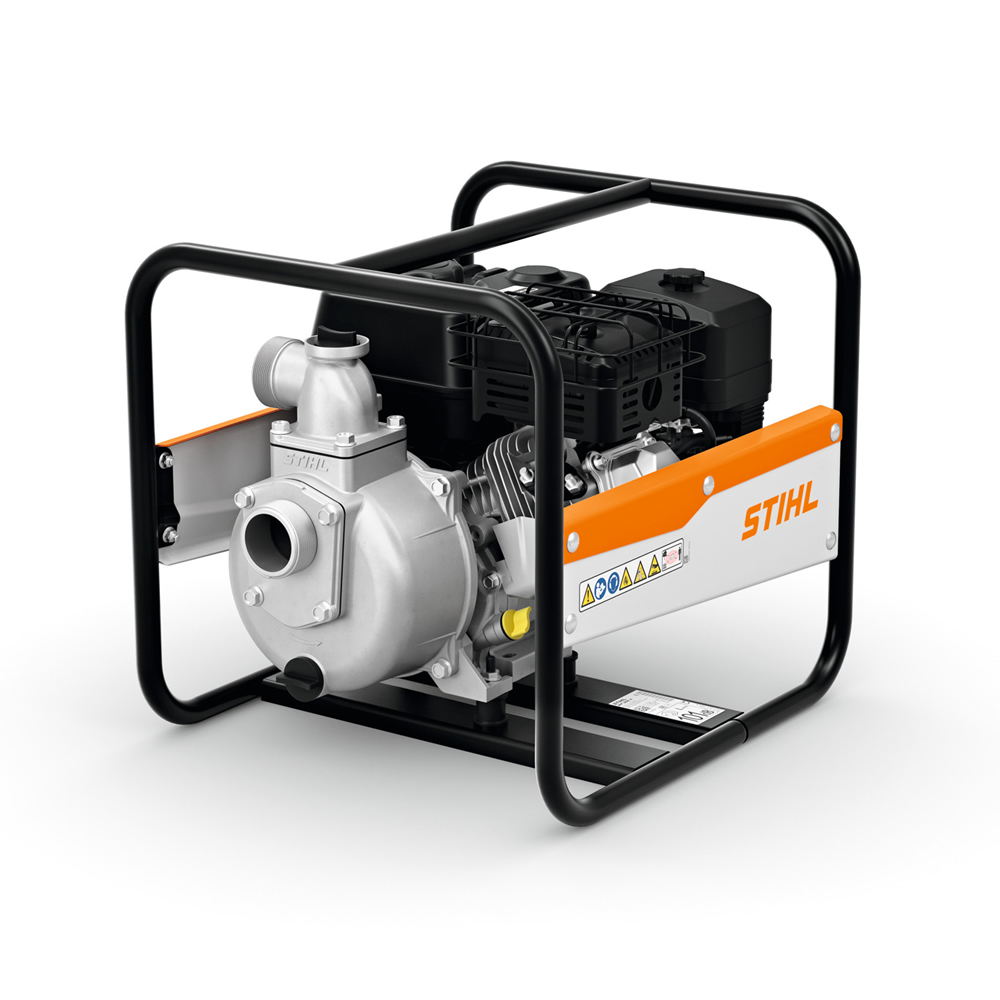 Den selvsugende vannpumpen har en robust ramme som gjør at den står sikkert på ulike underlag, og motoren er beskyttet mot skader. Slangene kan enkelt kobles til påfyllings- og utløpsåpningene med 2-tommers tilkoblinger ved hjelp av klemmer. Når STIHL WP 300 vannpumpe suger inn vann, er den beskyttet mot forurensning fra smusspartikler i vannet ved hjelp av en sugekurv. Partikler opp til en maksimal kornstørrelse på 6 mm kan suges inn, og risikoen for tilstopping av pumpen minimeres.